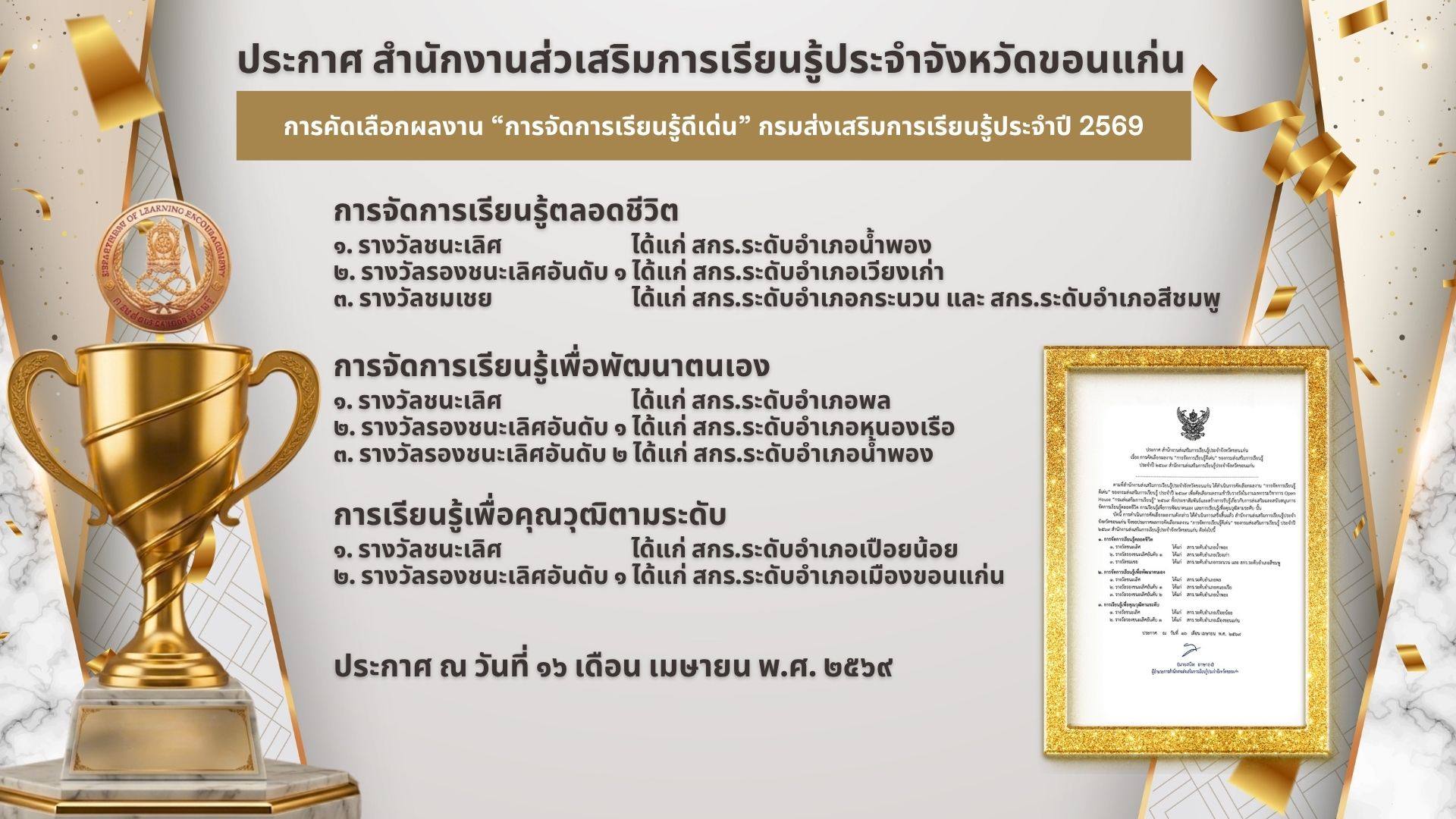 ประกาศจาก สำนักงาน สกร.ประจำจังหวัดขอนแก่น