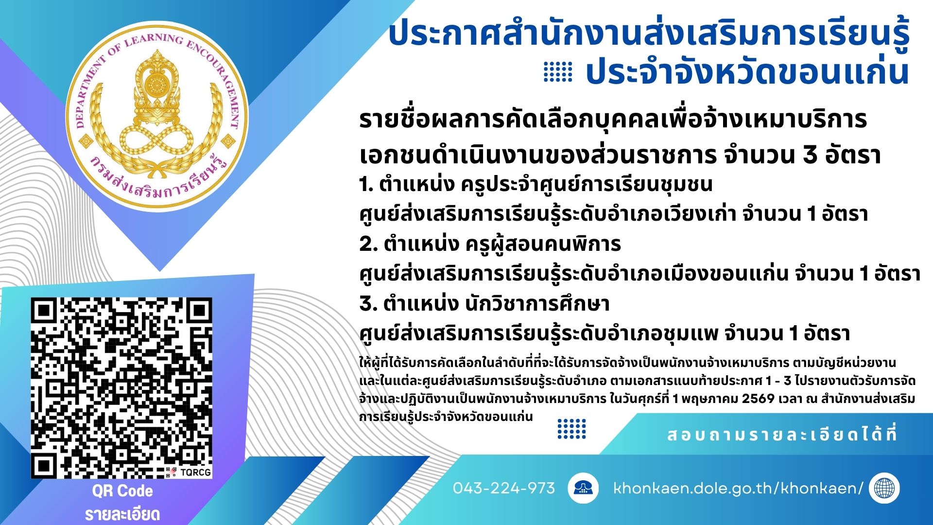 ประกาศจาก สำนักงาน สกร.ประจำจังหวัดขอนแก่น