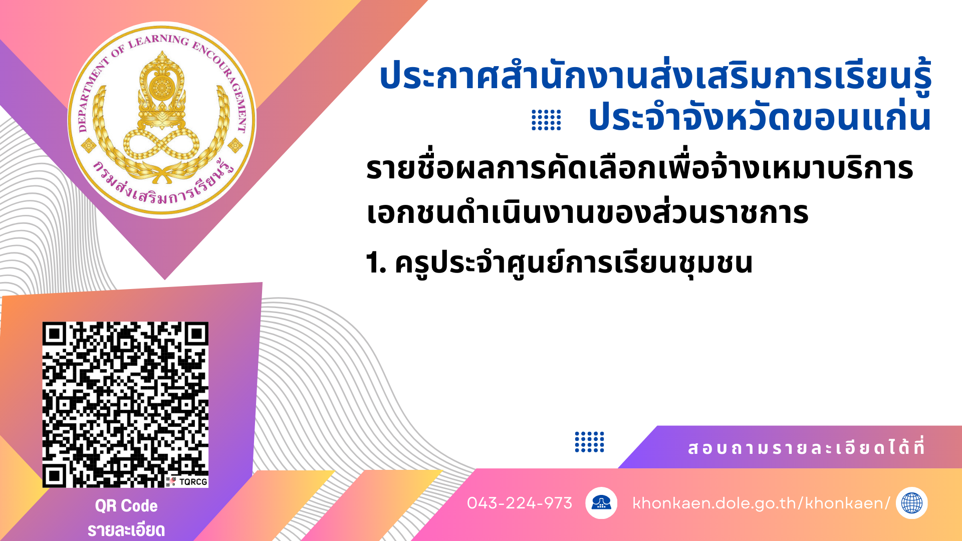 ประกาศจาก สำนักงาน สกร.ประจำจังหวัดขอนแก่น